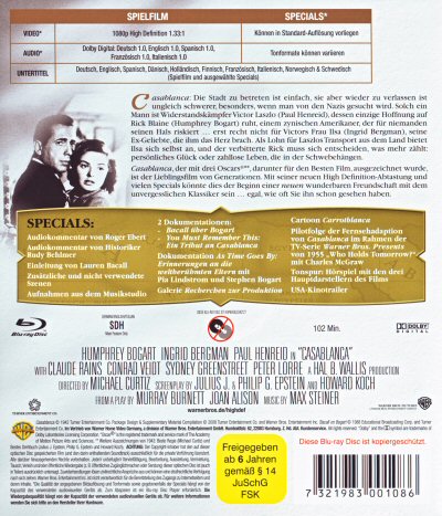 Rick et Lisa se sont aimés, puis séparés. Quelques années après, dans le chaos de la Deuxième Guerre mondiale, Lisa débarque à Casablanca avec son époux, héros de la résistance. Rick, devenu un propriétaire de Night Club cynique et détaché de tout, est le seul à pouvoir aider le couple à s'échapper. Mais il refuse jusqu'à ce qu'Isa réveille l'idéaliste qui dort en lui. Casablanca a acquis au cours des ans la stature de réelle légende hollywoodienne. 3 Oscars.