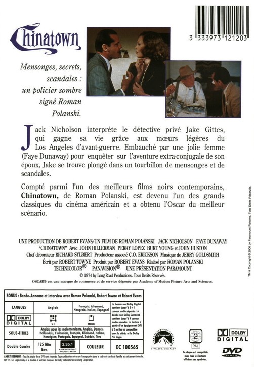 Jake Gittes, détective privé, gagne sa vie grâce aux moeurs légères du Los Angeles d'avant-guerre. Embauché par une jolie femme pour enquêter sur l'aventure extra-conjugale de son époux, Jake se trouve plongé dans un tourbillon de mensonges et de scandales.