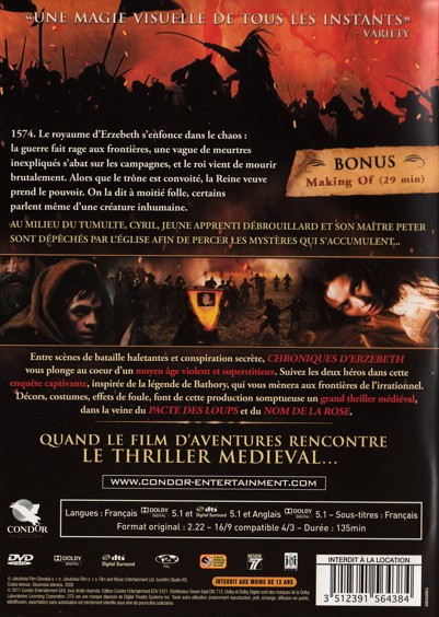 Grandes Terres de l'Est, 1574. Alors que la guerre fait rage aux frontières, le royaume d'Erzebeth s'enfonce dans le chaos. Le roi vient de mourir, les seigneurs sans scrupule se pressent aux portes de la capitale. Le Reine veuve, mystérieuse et fascinante, prend le pouvoir. On la dit à moitié folle, on lui prête des pouvoirs surnaturels, certains parlent d'une créature inhumaine. Au milieu du tumulte, Etzko, jeune novice débrouillard et son maître Kriztar, décident de percer le mystère...
