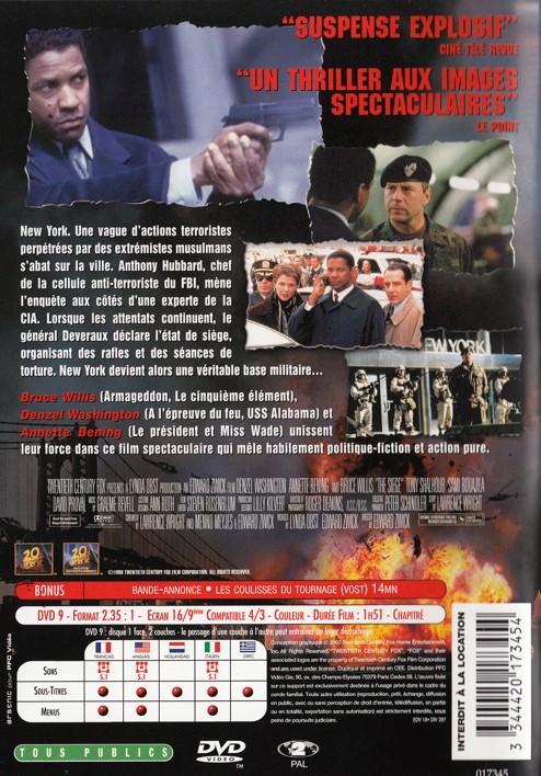 New York. Une vague d'actions terroristes perpétrées par des extrémistes musulmans s'abat sur la ville. Anthony Hubbard, chef de la cellule anti-terroriste du FBI, mène l'enquête aux cotés d'une experte de la CIA. Lorsque les attentats continuen, le général Deveraux déclare l'état de siège, organisant des rafles et des scéances de torture. New york devient alors une véritable base militaire...