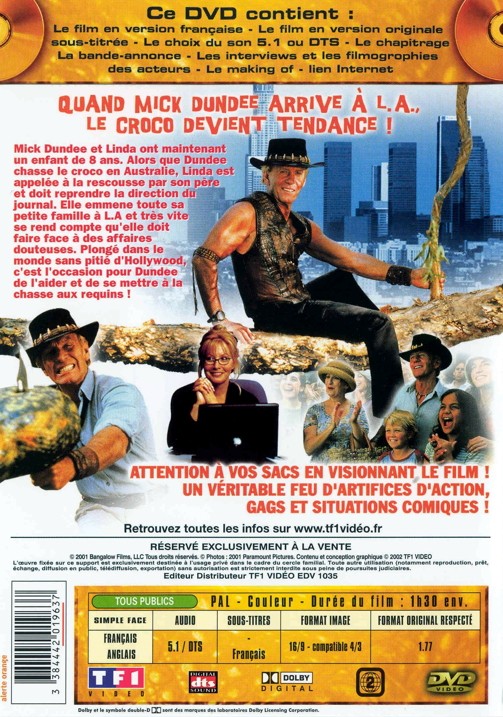 Quartorze ans après leur rencontre à New York, Mick "Crocodile" Dundee et Sue Charlton, sa charmante épouse, vivent toujours dans leur modeste maison de Walkabout Creek, un petit village situé au nord de l'Australie. Là, ils passent le plus clair de leur temps à éduquer leur fils, Mickey. Mais voilà que Sue vient de recevoir des nouvelles du bureau de son père depuis Los Angeles : le directeur d'un magazine est décédé dans d'étranges circonstances et Sue est demandée pour assurer la succession.