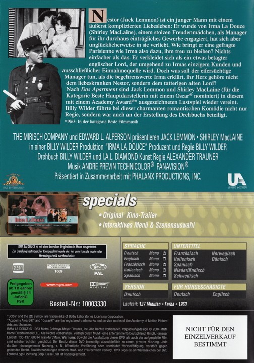 Nestor ist ein junger Mann mit einem äußerst komplizierten Liebesleben: Er wurde von Irma La Douce, einem stolzen Freudenmädchen, als Manager für ihr durchaus enträgliches Gewerbe engagiert, hat sich aber unglücklicherweise in sie verliebt. Wie bringt er eine gefragte Parisienne wie Irma also dazu, ihm treu zu bleiben? Nichts einfacher als das. Er verkleidet sich als ein etwas betagter englischer Lord, der umgehend zur Irmas einzigem Kunden und ausschließlicher Einnahmequelle wird. Doch was soll der eifersüchtige Manager tun, als die begehrenswerte Irma erklärt, ihr Herz gehöre nicht dem liebeskranken Nestor, sondern dem tatterigen alten Lord?