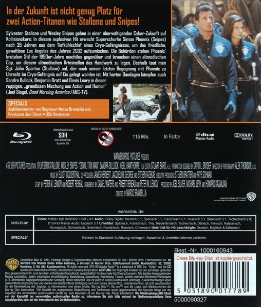 Sie kommen aus der Vergangenheit und mischen die Zukunft kräftig auf: im Jahre 2032, aus dem Eis ewiger Verbannung erwacht, liefern sich der Cop und der Killer aus der Jetztzeit das spannendste Duell des kommenden Jahrhunderts...