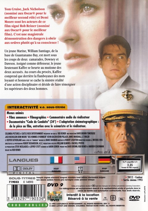 Cuba Gooding Jr., Tom Cruise, Kiefer Sutherland, Kevin Bacon, Kevin Pollak, Demi Moore, Jack Nicholson, Xander Berkeley, Matt Craven, J.T. Walsh...Christopher Guest, Noah Wyle, David Bowe, Michael DeLorenzo, John M. Jackson, James Marshall, Joshua Malina, Maud Winchester, Jan Munroe, Oscar Jordan, Matthew Saks, Ron Ostrow, J.A. Preston, Cameron Thor, Gene Whittington, Frank Cavestani, Harry Caesar, Geoffrey Nauffts, Alex Wexo, Arthur Senzy, Wolfgang Bodison, Lawrence Lowe, John M. Mathews, Bernard Madrid, Aaron Sorkin