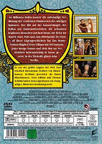 40 Millionen Dollar kostete die aufwändige Verfilmung der verrückten Flunkereien des adeligen Spinners. Der Ritt auf der Kanonenkugel, der Ballon aus Damenunterröcken, die seltsamen kopflosen Menschen auf dem Mond, die Reise im Bauch eines Wals und zum Mittelpunkt der Erde - all diese Lügengeschichten hat das Monty-Python-Mitglied Terry Gilliam mit viel Phantasie, jeder Menge Humor und dem Mut zur Verrücktheit farbenprächtig in Szene gesetzt. In der Titelrolle glänzt John Neville.
