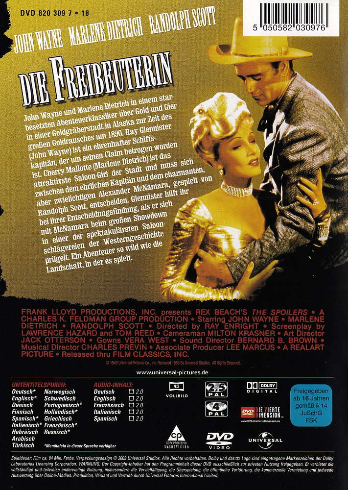 John Wayne und Marlene Dietrich in einem starbesetzten Abenteuerklassiker über Gold und Gier in einer Goldgräberstadt in Alaska zur Zeit des grossen Goldrausches um 1890. Ray Glennister ist ein ehrenhafter Schiffskapitän, der um seinen Claim betrogen worden ist. Cherry Mallotte ist das attraktivste Saloon-Girl in der Stadt und muss sich zwischen dem ehrlichen Kapitän und dem charmanten, aber zwielichtigen Alexander McNamara, gespielt von Randolph Scott, entscheiden. Glennister hilft ihr bei ihrer Entscheidungsfindung, als er sich mit McNamara bei grossen Showdown in einer der spektakulärsten Saloonschlägereien der Westerngeschichte prügelt. Ein Abenteuer so wild wie die Landschaft, in der es spielt.