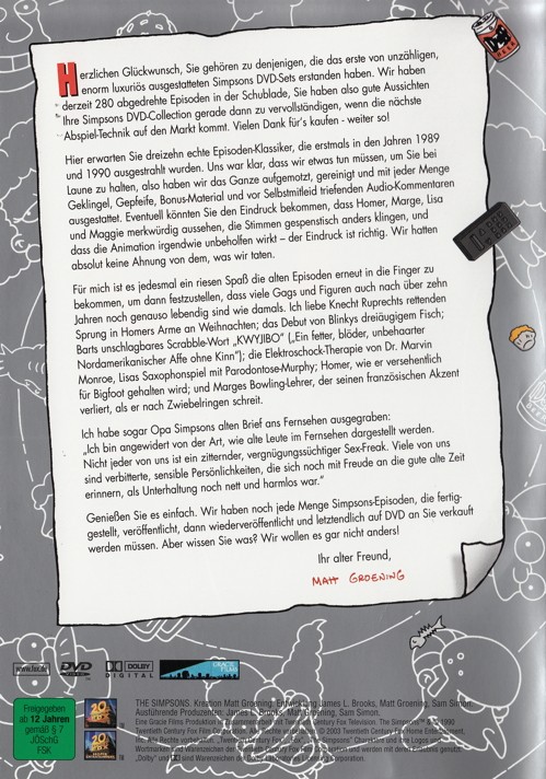 Bei ihrem ersten Auftritt als reguläre Serienhelden legen die Simpsons einen wahren Blitzstart hin. Vieles, was in den folgenden Episoden zum Kult oder Klassiker werden soll, nimmt hier seinen Anfang. Staffel eins bietet Evergreens der Evergreen Terrace en masse.