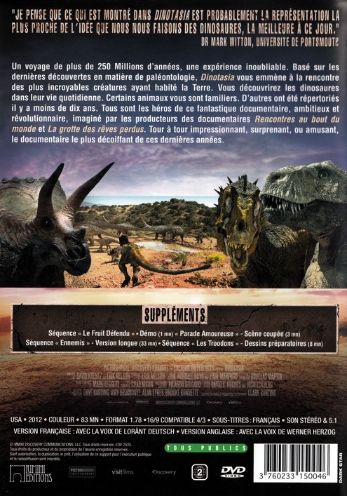 Basé sur les dernières découvertes en matière de paléontologie, et les plus récents fossiles étudiés, Dinotasia met en scène les dinosaures dans leur vie quotidienne. Certains animaux nous sont familiers. D'autres ont été répertoriés il y a moins de dix ans. Tous sont les héros de ce fantastique documentaire, ambitieux et révolutionnaire.Tour à tour poignant, violent, ou amusant, le documentaire le plus décoiffant de ces dernières années.