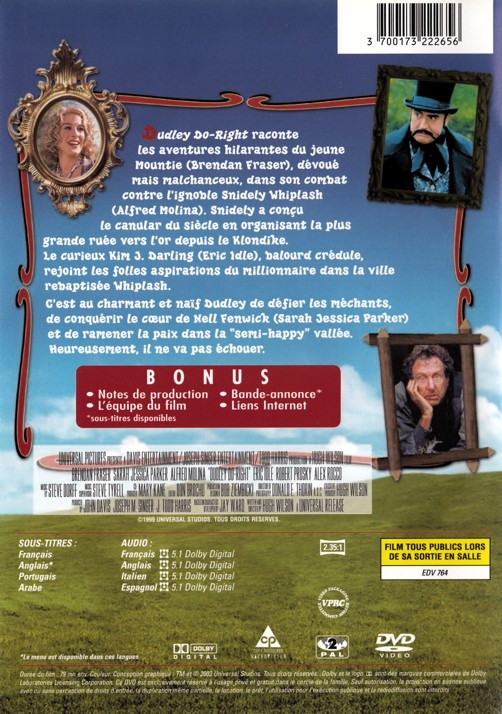 Set in the Canadian Rockies community of Semi-Happy Valley where nothing ever happens, Dudley Do-Right (Brendan Fraser) follows the hilarious exploits of the dedicated but hapless young Mountie.