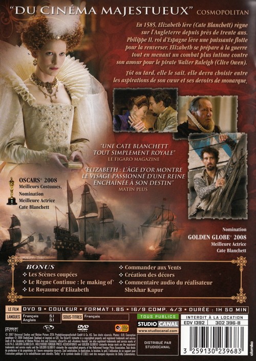 En 1585, Elizabeth Ière (Cate Blanchett) règne sur l'Angleterre depuis près de trente ans. Philippe II, roi d'Espagne lève une puissante flotte pour la renverser. Elizabeth se prépare à la guerre tout en menant un combat plus intime contre son amour pour le pirate Walter Raleigh (Clive Owen).
