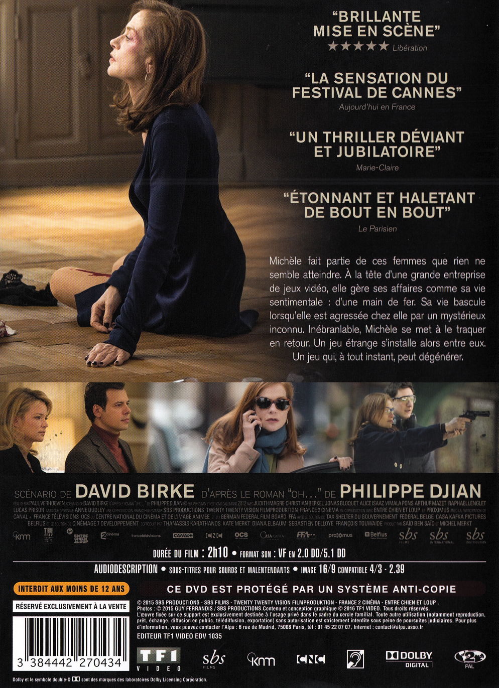 Michèle fait partie de ces femmes que rien ne semble atteindre. À la tête d'une grande entreprise de jeux vidéo, elle gère ses affaires comme sa vie sentimentale : d'une main de fer. Sa vie bascule lorsqu?elle est agressée chez elle par un mystérieux inconnu. Inébranlable, Michèle se met à le traquer en retour. Un jeu étrange s'installe alors entre eux. Un jeu qui, à tout instant, peut dégénérer.