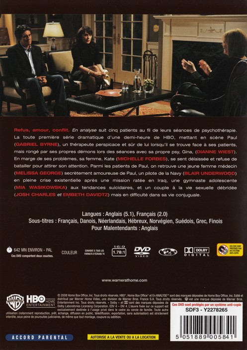 Refus, amour, conflit. En analyse suit cinq patients au fil de leurs séances de psychothérapie. La toute première série dramatique d'une demi-heure de HBO, mettant en scène Paul, un thérapeute perspicace et sûr de lui lorsqu'il se trouve face à ses patients, mais rongé par ses propres démons lors des séances avec sa propre psy, Gina. En marge de ses problèmes, sa femme, Kate, se sent délaissée et refuse de bâtailler pour attirer son attention. Parmi les patients de Paul, on retrouve une jeune femme médecin secrètement amoureuse de Paul, un pilote de la Navy en pleine crise existentielle après une mission ratée en Iraq, une gymnaste adolescente aux tendances suicidaires, et un couple à la vie sexuelle débridée mais en difficulté dans sa vie conjugale.