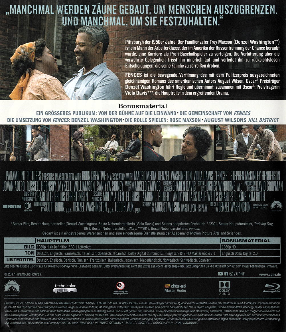 L'histoire bouleversante d'une famille où chacun lutte pour exister et être fidèle à ses rêves, dans une Amérique en pleine évolution. Troy Maxson aspirait à devenir sportif professionnel mais il a dû renoncer et se résigner à devenir employé municipal pour faire vivre sa femme et son fils. Son rêve déchu continue à le ronger de l'intérieur et l'équilibre fragile de sa famille va être mis en péril par un choix lourd de conséquences...