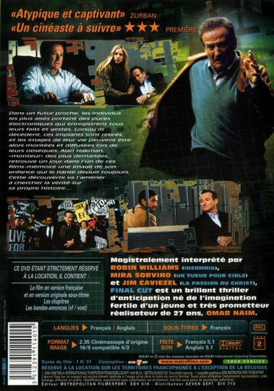 Evoluant dans un univers futuriste, les gens portent dorénavant des puces électroniques qui enregistrent leurs moindres faits et gestes. Lorsqu'ils décèdent, ces puces sont retirées, et les images enregistrées tout au long de leur vie peuvent alors être montées et diffusées lors de leurs obsèques.