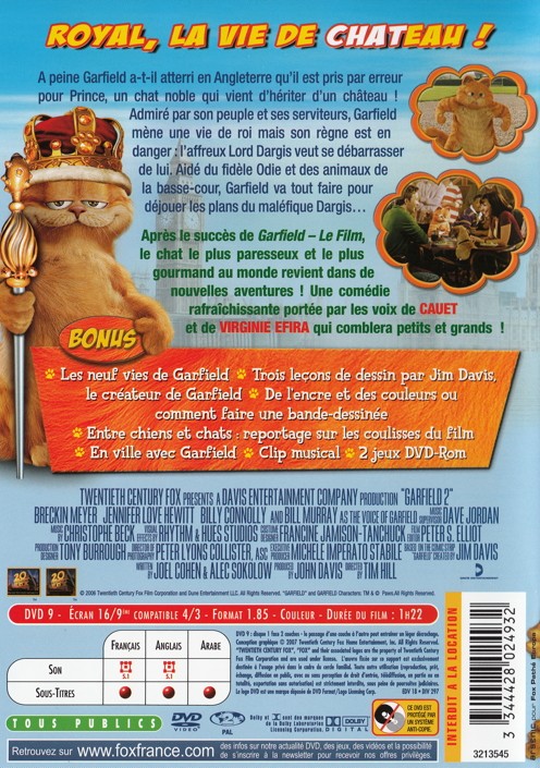 Garfield est en Angleterre ! Il est pris par erreur pour Prince, un chat noble qui vient d'hériter d'un château. Adoré par ses sujets, Garfield se régale. Mais son règne est en danger : l'affreux Lord Dargis veut se débarrasser de lui et faire du château un parc d'attractions. Pendant ce temps, Prince XII, son sosie royal, revient au château. Garfield et Prince, aidés par le fidèle Odie et les autres animaux, vont alors unir leurs forces pour sauver l'établissement et déjouer les projets maléfiques de Dargis...