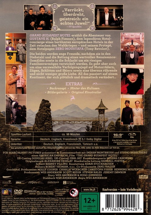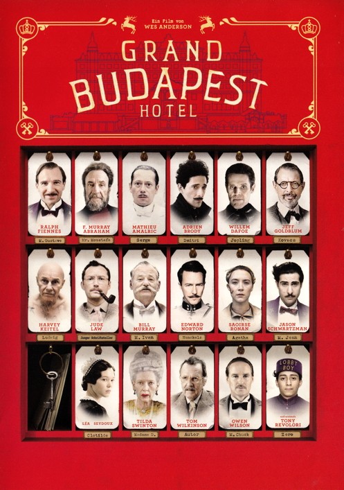Ralph Fiennes, Edward Norton, Jude Law, Willem Dafoe, Bill Murray, Jeff Goldblum, Tom Wilkinson, Adrien Brody, Owen Wilson, Tilda Swinton...Harvey Keitel, Bob Balaban, Florian Lukas, F. Murray Abraham, Karl Markovics, Mathieu Amalric, Jason Schwartzman, Matthias Matschke, Saoirse Ronan, Léa Seydoux, Milton Welsh, Sabine Urig, Michael Benthin, Daniel Steiner, Heike Hanold-Lynch, Rainer Reiners, Gabriel Rush, Paul Schlase, Hendrik von Bültzingslöwen, Roy Macready, Tony Revolori, Carl Sprague