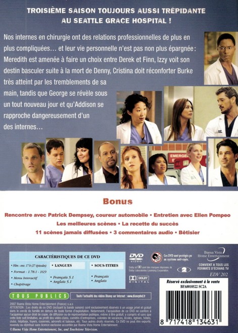- Titre Grey's Anatomy - Saison 3 [DVD]