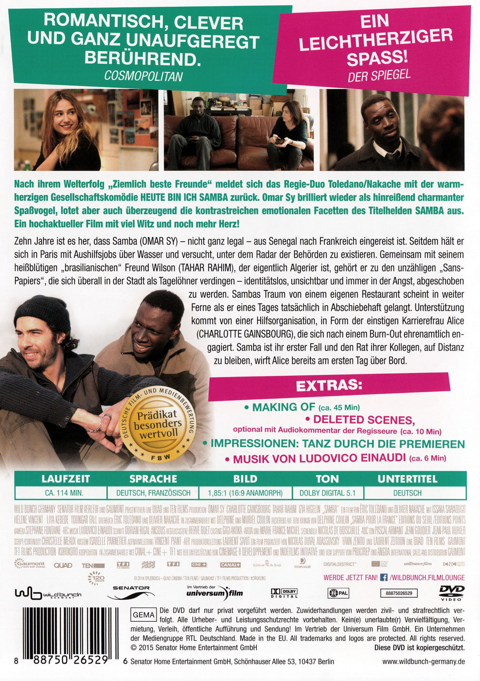 Zehn Jahre ist es her, dass Samba - nicht ganz legal - aus Senegal nach Frankreich eingereist ist. Seitdem hält er sich in Paris mit Aushilfsjobs über Wasser und versucht dabei nicht aufzufallen. Zusammen mit seinem heissblütigen "brasilianischen" Freund Wilson, der aber eigentlich aus Algerien stammt, schlüpft er in die unterschiedlichsten Verkleidungen und wechselt häufig den Job, wenn wieder mal was schief geht. Dennoch hält Samba an seinem grossen Traum, eines Tages als Restaurantkoch zu arbeiten, optimistisch fest. Endlich winkt ihm eine unbefristete Stelle und er wird leichtsinnig, weil er glaubt, dass eine Aufenthaltserlaubnis jetzt nur noch reine Formsache ist. Doch dann verweigern ihm die Behörden die ersehnten Papiere und er landet postwendend in Abschiebehaft. Jetzt steckt Samba richtig in der Klemme und braucht dringend Hilfe. Die erhofft er sich von der dünnhäutigen Karrierefrau Alice, die sich nach einem Burn-Out nun ehrenamtlich im Sozialdienst engagiert. Samba ist ihr erster "Fall" und sie macht gleich alles falsch: Obwohl ihr die Kolleginnen eingeschärft haben, immer die Distanz zu wahren, gibt sie Samba schon am ersten Tag ihre Telefonnummer.