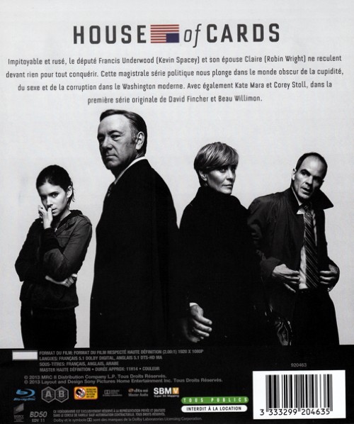 - Titre House of Cards - Saison 1 [Blu-ray]