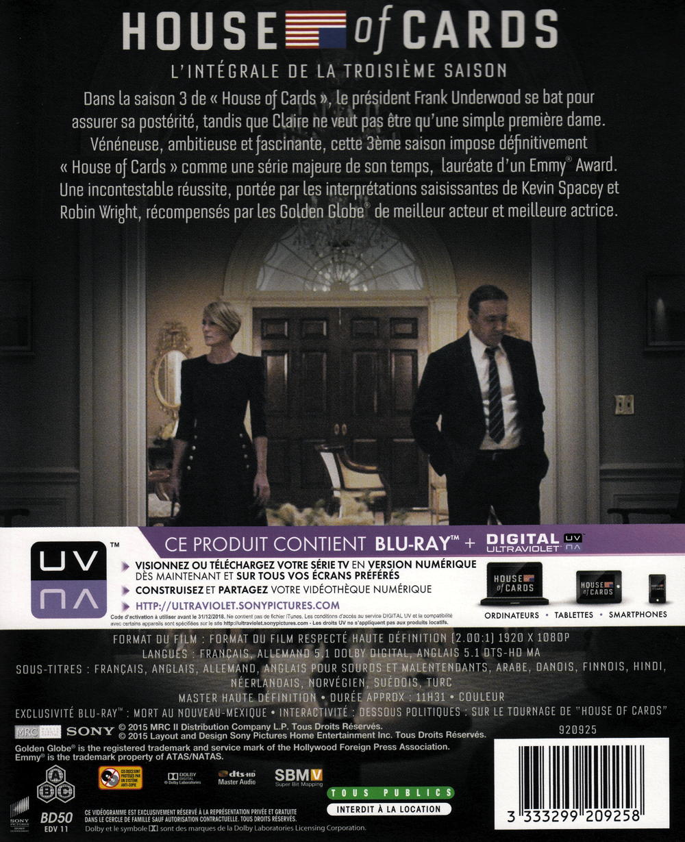 - Titre House of Cards - Saison 3 [Blu-ray]