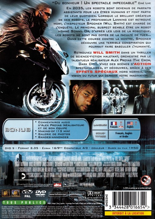 En 2035, les robots sont devenus de parfaits assistants pour les êtres humains. Le détective Del Spooner enquête sur le meurtre du docteur Alfred Lanning, un chercheur en robotique. Le principal suspect semble être un androïde nommé Sonny. Or, si l'on s'en réfère aux lois de la robotique, les robots ne sont pas dotés de la faculté de tuer...