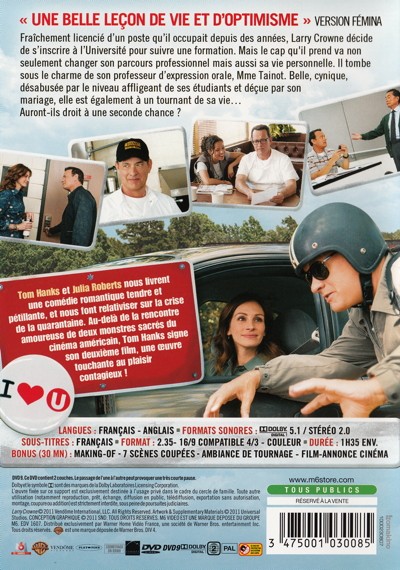 Fraîchement licencié d’un poste qu’il occupait depuis des années, Larry Crowne décide de s’inscrire à l’Université pour reprendre ses études. Ce changement de vie professionnelle prend une tournure plus personnelle lorsqu’il tombe sous le charme de son professeur d’expression orale, Mme Tainot. Belle, cynique, désabusée par le niveau affligeant de ses étudiants et déçue par son mariage, elle est également à un tournant de sa vie... Auront-ils droit à une seconde chance ?