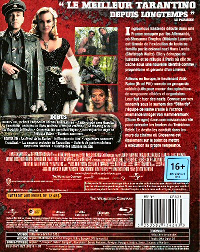 Ailleurs en Europe, le lieutenant Aldo Raine recrute un groupe de soldats juifs pour mener des opérations de vengeance ciblées et organisées. Leur but: tuer des nazis. Connue par ses ennemis sous le surnom des Bâtards, l’équipe de Raine s’allie à l’actrice allemande Bridget Von Hammersmark dans une mission secrète pour exécuter les leaders du Troisième Reich. Le destin les conduit dans les murs du cinéma où Shosanna est également sur le point de mettre à exécution sa propre vengeance.
