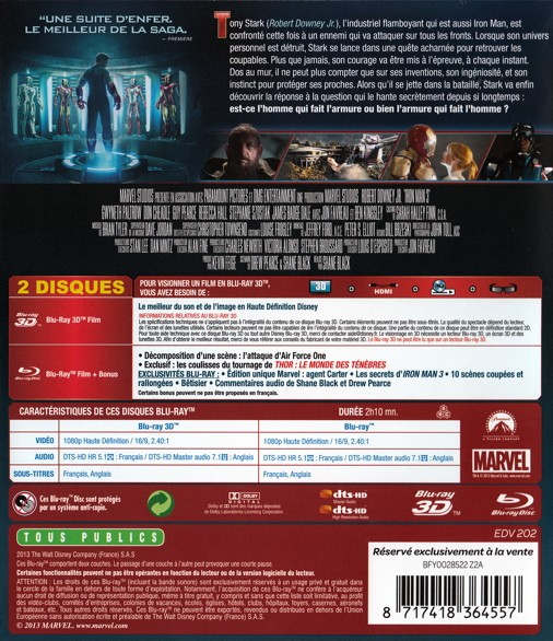 Tony Stark, l’industriel flamboyant qui est aussi Iron Man, est confronté cette fois à un ennemi qui va attaquer sur tous les fronts. Lorsque son univers personnel est détruit, Stark se lance dans une quête acharnée pour retrouver les coupables. Plus que jamais, son courage va être mis à l’épreuve, à chaque instant. Dos au mur, il ne peut plus compter que sur ses inventions, son ingéniosité, et son instinct pour protéger ses proches. Alors qu’il se jette dans la bataille, Stark va enfin découvrir la réponse à la question qui le hante secrètement depuis si longtemps : est-ce l’homme qui fait le costume ou bien le costume qui fait l’homme ?