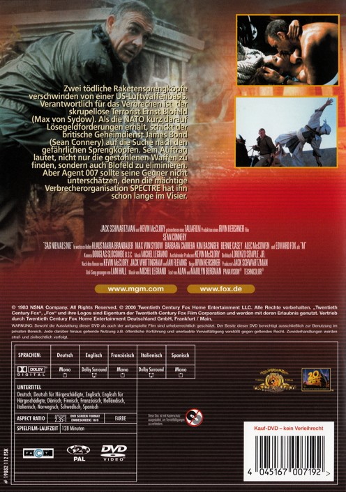 - Titre James Bond 007 - Sag niemals nie [DVD]