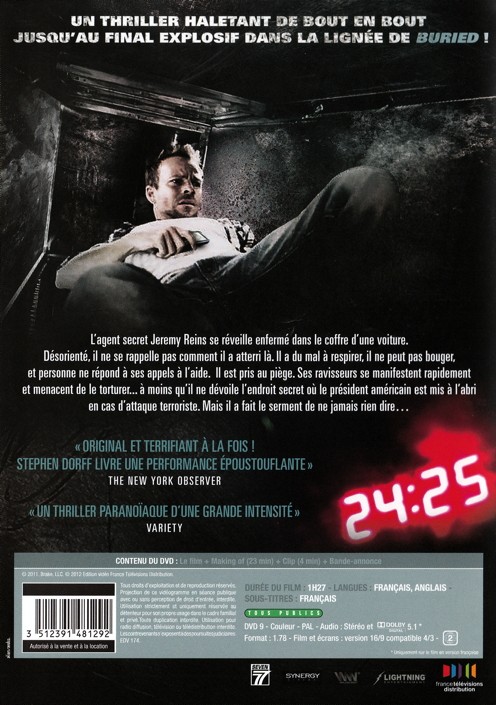 L'agent secret Jeremy Reins se réveille enfermé dans le coffre d'une voiture. Désorienté, il ne se rappelle pas comment il a atterri là. Il a du mal à respirer, il ne peut pas bouger, et personne ne répond à ses appels à l'aide. Il est pris au piège. Ses ravisseurs se manifestent rapidement et menacent de le torturer... à moins qu'il ne dévoile l'endroit secret où le président américain est mis à l'abri en cas d'attaque terroriste. Mais il a fait le serment de ne jamais rien dire...