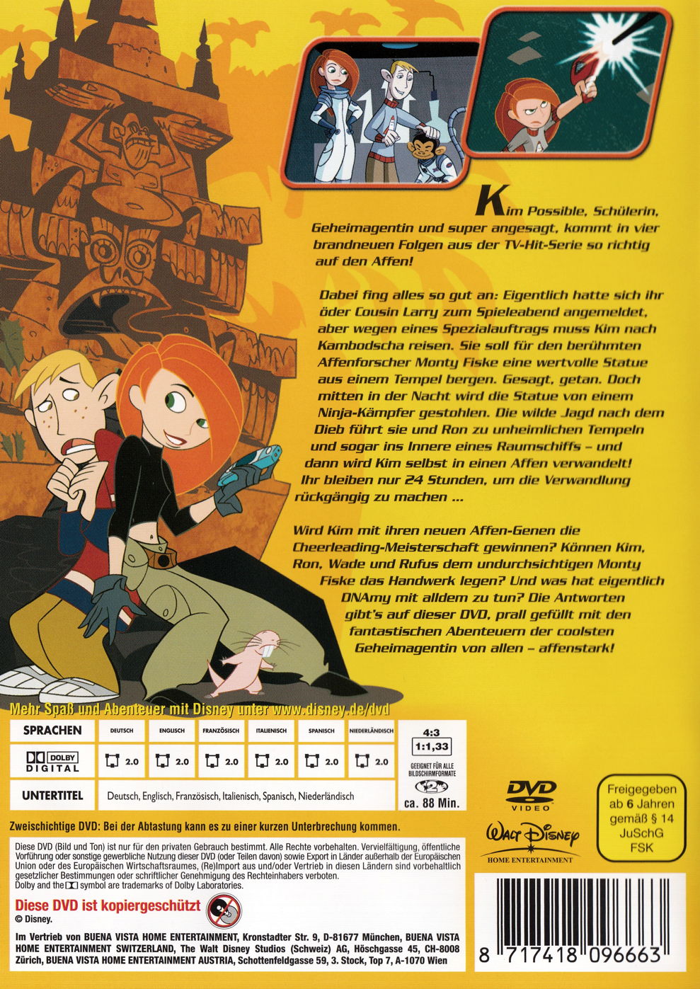 Kim Possible, la plus incroyable des collégiennes, est de retour pour accomplir de nouvelles missions top secrètes ! Toujours accompagnée de Ron Trépide, son ami fidèle, elle va sauver le monde sans jamais utiliser d'armes. Son secret ' Une technique de combat hors pair, une ruse à toute épreuve et un arsenal de gadgets. Dans ces quatre nouvelles missions, Kim Possible doit faire face à la menace d'une armée de singes Ninjas dirigée par un Lord des plus diaboliques...