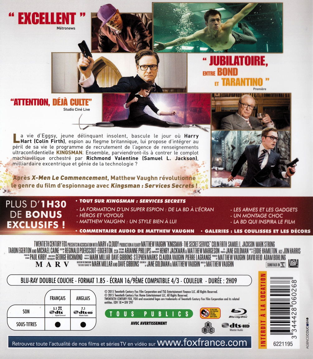 La vie d'Eggsy, jeune délinquant insolent, bascule le jour où Harry Hart, espion au flegme britannique, lui propose d'intégrer au péril de sa vie le programme de recrutement de l'agence de renseignements ultraconfidentielle Kingsman. Ensemble, parviendront-ils à contrer le complot machiavélique orchestré par Richmond Valentine, milliardaire excentrique et génie de la technologie ?
