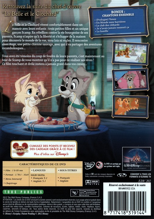 - Titre originale Lady and the Tramp 2 - Scamp's Adventure
