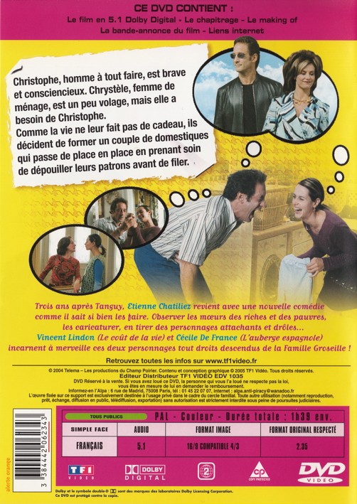 Christophe, homme à tout faire, est brave et consciencieux. Chrystèle, femme de ménage, est un peu volage, mais elle a besoin de Christophe. Comme la vie ne leur fait pas de cadeau, ils décident de former un couple de domestiques qui passe de place en place en prenant soin de dépouiller leurs patrons avant de filer.
