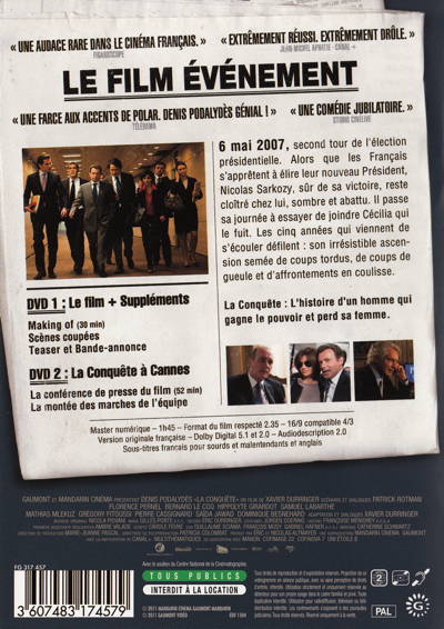 6 mai 2007, second tour de l'élection présidentielle. Alors que les Français s’apprêtent à élire leur nouveau Président, Nicolas Sarkozy, sûr de sa victoire, reste cloîtré chez lui, en peignoir, sombre et abattu. Toute la journée, il cherche à joindre Cécilia qui le fuit. Les cinq années qui viennent de s'écouler défilent: elles racontent l'irrésistible ascension de Sarkozy, semée de coups tordus, de coups de gueule et d'affrontements en coulisse. La conquête : L'histoire d'un homme qui gagne le pouvoir et perd sa femme.