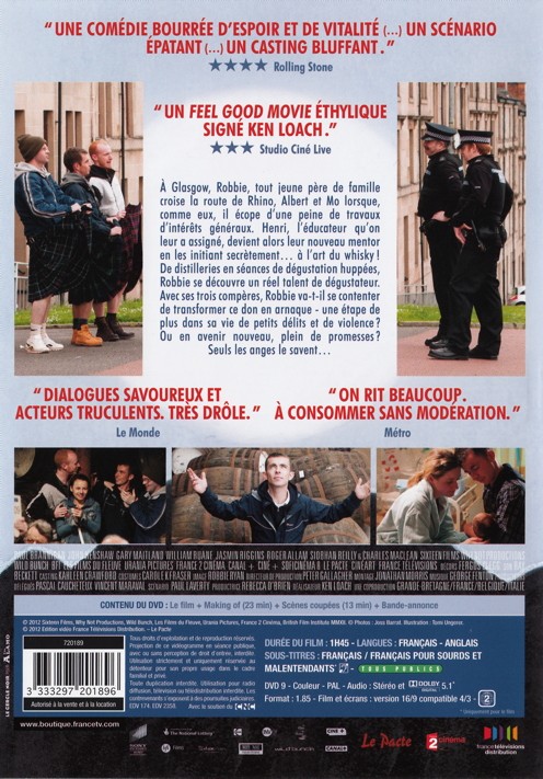 À Glasgow, Robbie, tout jeune père de famille, est constamment rattrapé par son passé de délinquant. Il croise la route de Rhino, Albert et la jeune Mo lorsque, comme eux, il échappe de justesse à la prison mais écope d'une peine de travaux d'intérêts généraux. Henri, l'éducateur qu'on leur a assigné, devient alors leur nouveau mentor en les initiant secrètement... à l'art du whisky ! De distilleries en séances de dégustation huppées, Robbie se découvre un réel talent de dégustateur, bientôt capable d'identifier les cuvées les plus exceptionnelles, les plus chères. Avec ses trois compères, Robbie va-t-il se contenter de transformer ce don en arnaque - une étape de plus dans sa vie de petits délits et de violence ? Ou en avenir nouveau, plein de promesses ? Seuls les anges le savent...