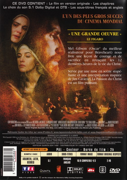 Mel Gibson (Oscar du meilleur réalisateur pour Braveheart) nous livre une leçon de courage et de sacrifice en retraçant les 12 dernières heures de la vie du Christ.