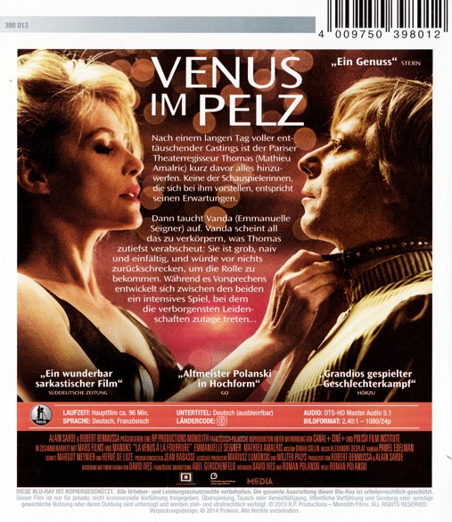 Seul dans un théâtre parisien après une journée passée à auditionner des comédiennes pour la pièce qu'il s’apprête à mettre en scène, Thomas se lamente au téléphone sur la piètre performance des candidates. Pas une n'a l'envergure requise pour tenir le rôle principal et il se prépare à partir lorsque Vanda surgit, véritable tourbillon d'énergie aussi débridée que délurée. Vanda incarne tout ce que Thomas déteste. Elle est vulgaire, écervelée, et ne reculerait devant rien pour obtenir le rôle. Mais un peu contraint et forcé, Thomas la laisse tenter sa chance et c'est avec stupéfaction qu'il voit Vanda se métamorphoser. Non seulement elle s'est procuré des accessoires et des costumes, mais elle comprend parfaitement le personnage (dont elle porte par ailleurs le prénom) et connaît toutes les répliques par cœur. Alors que l'audition se prolonge et redouble d'intensité, l'attraction de Thomas se mue en obsession...
