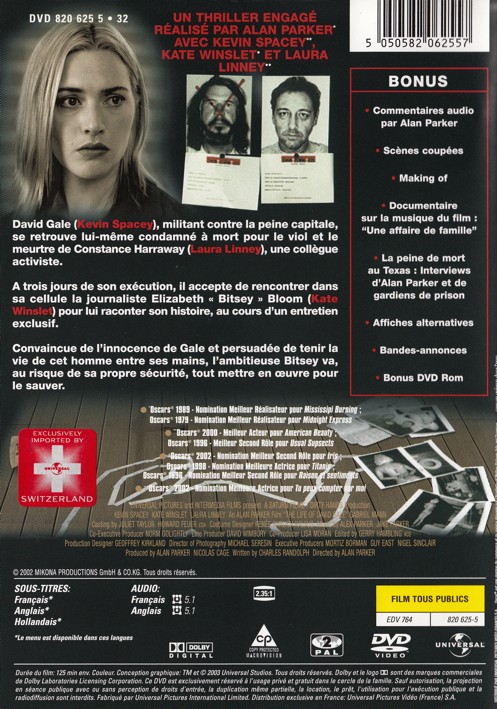David Gale, militant contre la peine capitale, se retrouve lui-même condamné à mort pour le viol et le meurtre de Constance Harraway, une collègue activiste. A trois jours de son exécution, il accepte de rencontrer une journaliste, pour lui raconter son histoire. Convaincue de l'innocence de Gale, la file va, au risque de sa propre sécurité, tout mettre en oeuvre pour le sauver...