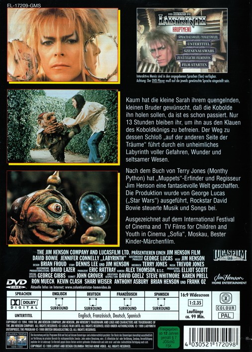Jennifer Connelly, Frank Oz, Dave Goelz, David Bowie, Brian Henson, Timothy Bateson, Karen Prell, David Alan Barclay, Christopher Malcolm, David Shaughnessy...Toby Froud, Shelley Thompson, Natalie Finland, Shari Weiser, Ron Mueck, Rob Mills, Michael Horder