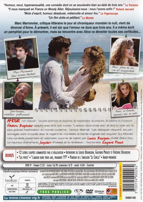 Marc Marronnier, critique littéraire le jour et chroniqueur mondain la nuit, vient de divorcer d'Anne. Il est sûr à présent que l'amour ne dure que trois ans. Il a même écrit un pamphlet pour le démontrer mais sa rencontre avec Alice va renverser toutes ses certitudes...