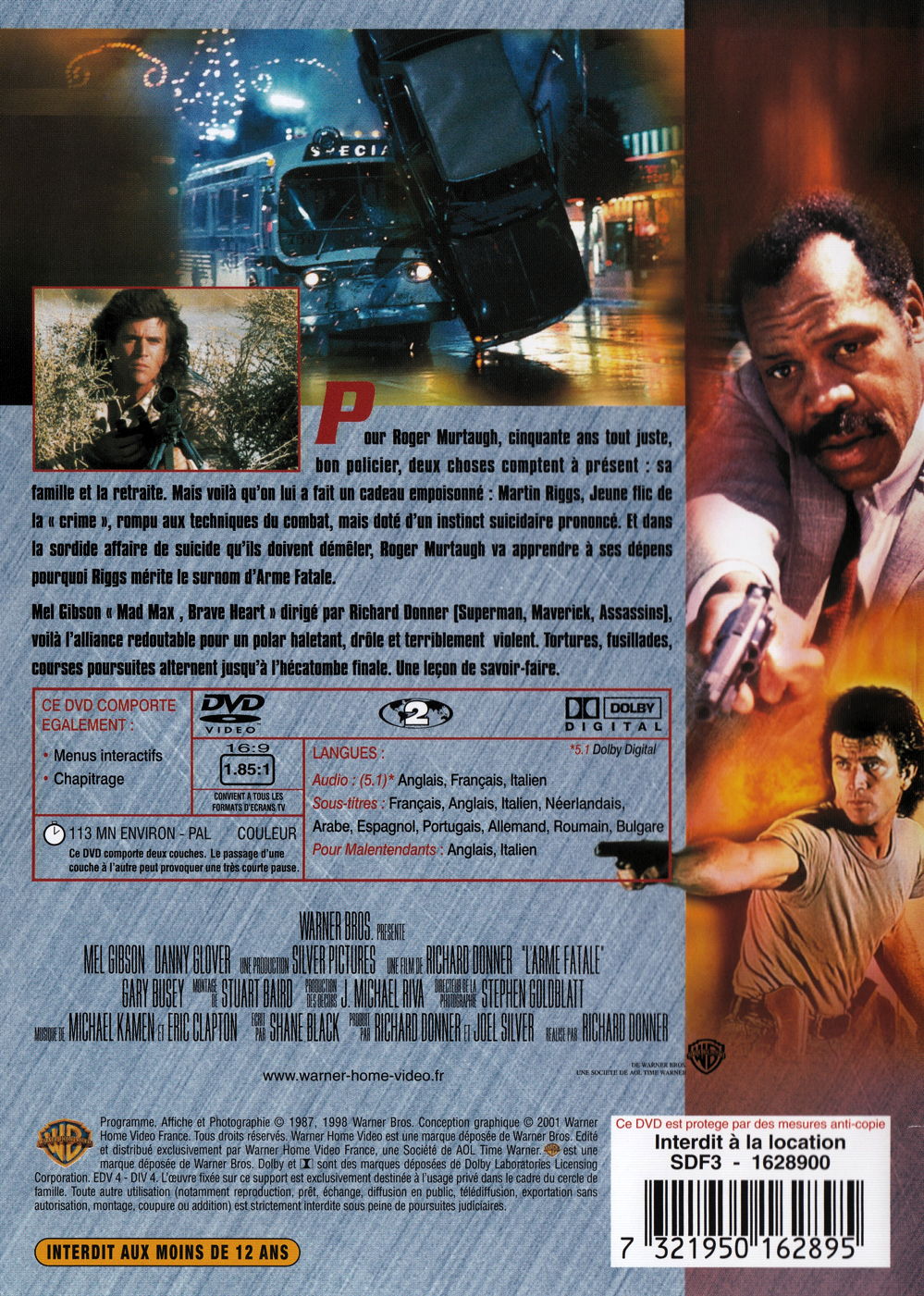 Pour Roger Murtaugh, 50 ans tout juste et un bon policier, deux seules choses comptent à présent : sa famille et la retraite. Mais voilà qu'on lui fait un cadeau empoisonné : Martin Riggs, jeune flic de la crime, rompu aux techniques de combat, doté d'un instinct suicidaire avancé. Et dans la sordide affaire de suicide qu'ils doivent démêler, Roger Murtaugh va apprendre à ses dépens pourquoi Riggs mérite l'inquiétant surnom d'arme fatale.