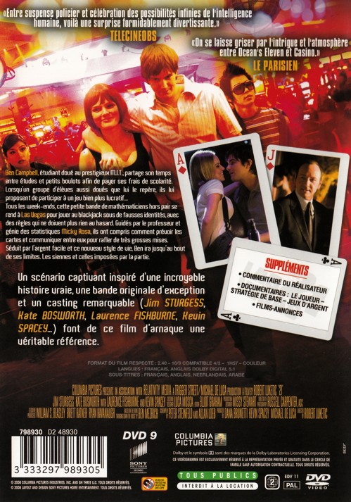 Ben Campbell, étudiant doué au prestigieux M.I.T., est contraint de partager son temps entre ses études et petits boulots afin de pouvoir payer ses frais de scolarité. Lorsqu?un groupe d?élèves aussi doués que lui le repère, ils lui proposent de participer à un jeu bien plus lucratif? Tous les week-ends, cette petite bande de mathématiciens hors pair se rend à Las Vegas pour jouer au blackjack sous de fausses identités, avec des règles qui ne doivent plus rien au hasard. Guidés par le professeur et génie des statistiques Micky Rosa, ils ont compris comment prévoir les cartes et communiquer entre eux pour rafler de très grosses mises. Séduit par l?argent facile, la vie de rêve et Jill, sa très belle équipière, Ben multiplie les défis. Les risques augmentent pourtant rapidement avec les mises, et les cartes ne restent pas longtemps son seul adversaire : il doit désormais se méfier de Cole Williams, le plus terrifiant des hommes de main des casinos?