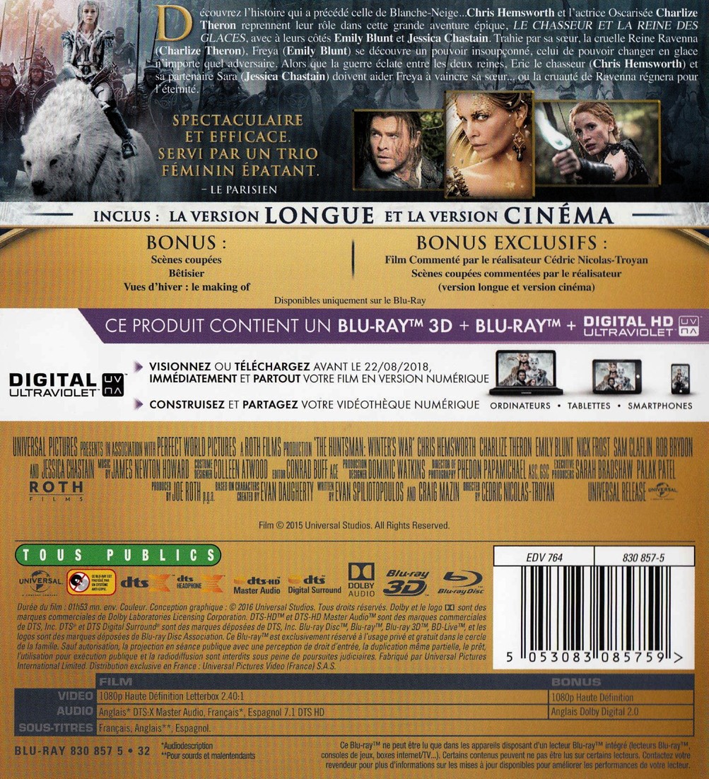 - Titre Le chasseur et la reine des glaces [Blu-ray 3D]