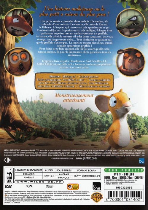Une petite souris se promène dans un bois très sombre. Elle rencontre un renard, un hibou et un serpent qui la trouvent bien appétissante et l'invitent chacun leur tour à déjeuner dans leur demeure. Mais la petite souris, très maligne, prétexte un rendez-vous avec... un Gruffalo ! Mais au fait, c'est quoi un Gruffalo ?