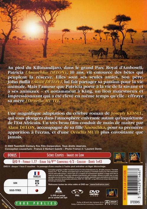 Au pied du Kilimandjaro, dans le grand Parc Royal d'Amboseli, Patricia, 10 ans, vit entourée des animaux qui peuplent la réserve administrée par son père, John Bullit, qui lui fait partager sa passion pour la vie animale. Mais l'amour que Patricia porte à la vie de la savane et à ses animaux - et notamment à King, un lion majestueux et impressionnant qui a été élevé en même temps qu'elle - effraye sa mère.