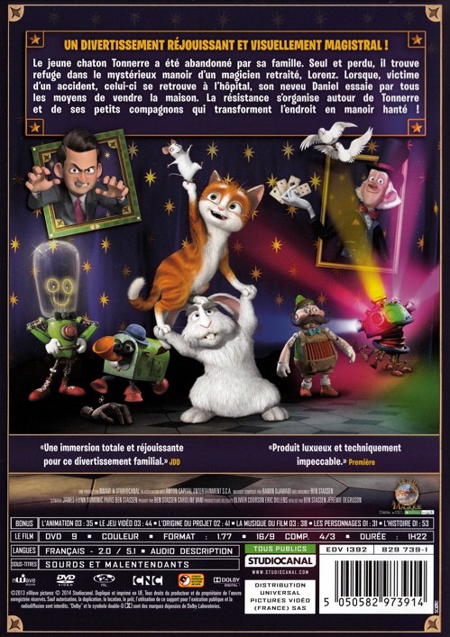 Tonnerre, un jeune chat, a été abandonné par sa famille. Seul et perdu, il trouve refuge dans un mystérieux manoir appartenant à Lorenz, un magicien retraité. Très vite, Tonnerre se sent comme chez lui dans cette maison enchantée, remplie de petits personnages aussi étranges qu'amusants... Mais lorsque son hôte, Lorenz, est envoyé à l'hôpital, son neveu essaie par tous les moyens de vendre la maison sans que son oncle ne s'en aperçoive. C'est alors que Tonnerre a une idée des plus surprenantes : transformer leur manoir en maison hantée ! La résistance s'organise avec l'aide de ses petits compagnons.