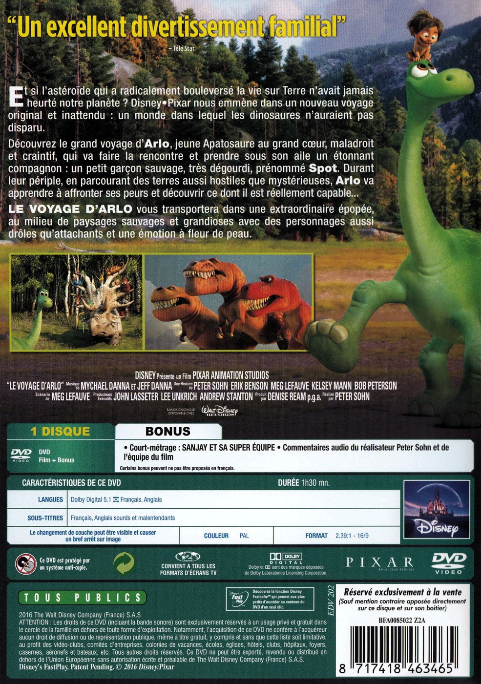 Et si la catastrophe cataclysmique qui a bouleversé la Terre et provoqué l'extinction des dinosaures n'avait jamais eu lieu ? Et si les dinosaures ne s'étaient jamais éteints, et vivaient parmi nous de nos jours ? Arlo, jeune Apatosaure au grand coeur, maladroit et craintif, qui va faire la rencontre et prendre sous son aile un étonnant compagnon : un petit garçon sauvage, très dégourdi, prénommé Spot.