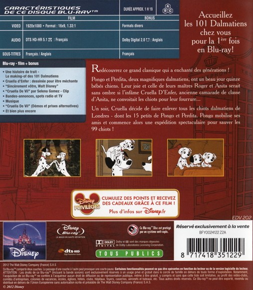 - Titre Les 101 dalmatiens [Blu-ray]