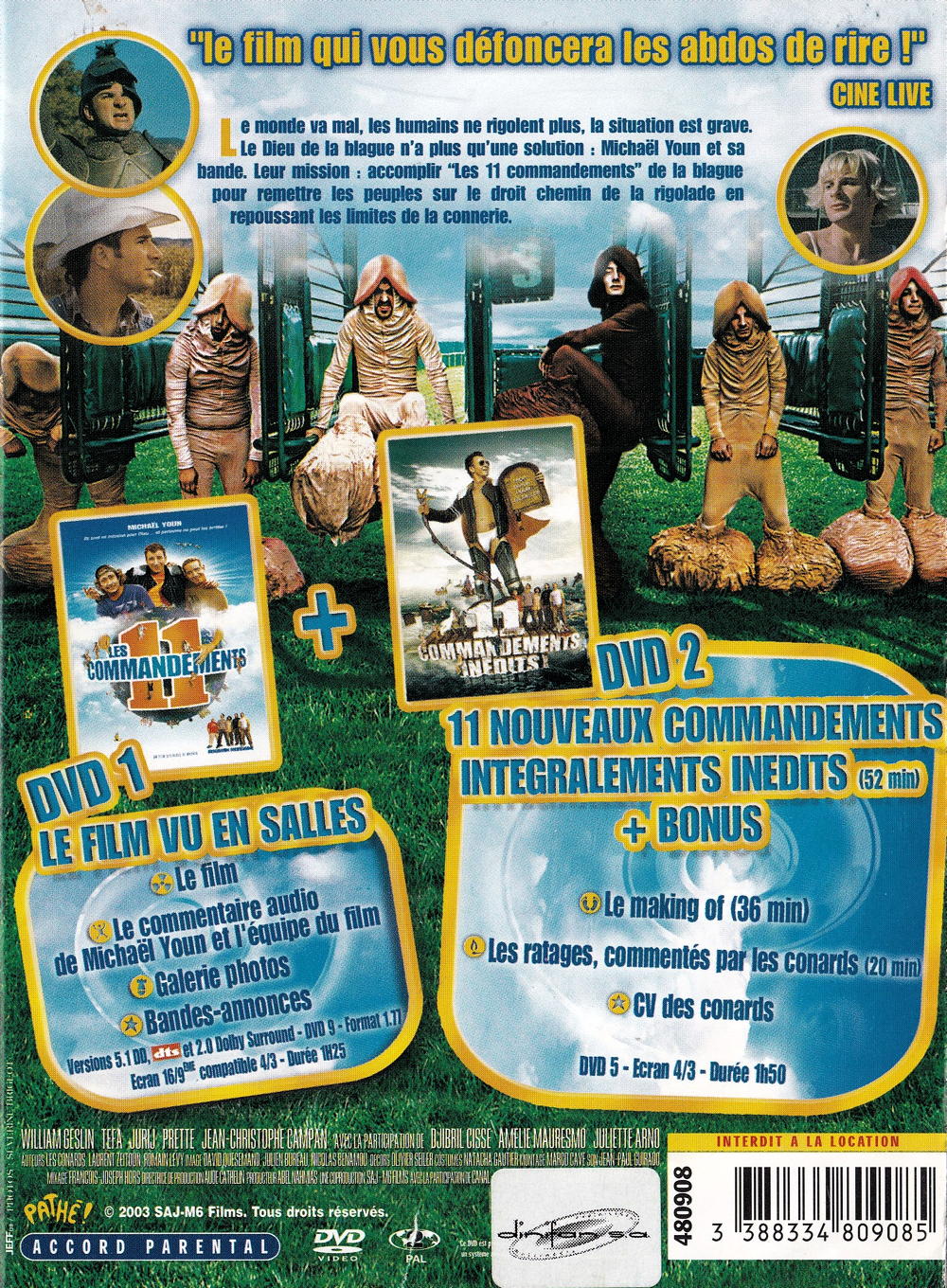 Le monde va mal, les humains ne rigolent plus, la situation est grave. Le dieu de la blague n'a plus qu'une solution : Michaël Youn et sa bande. Leur mission : accomplir "Les 11 commandements" de la blague pour remettre les peuples sur le droit chemin de la rigolade en repoussant les limites de la connerie. Danser la valse en apesanteur à 15 000 mètres d'altitude, inonder une maison pour la transformer en piscine, jouer au beach volley avec une érection contrôlée, faire du roller sous somnifères...